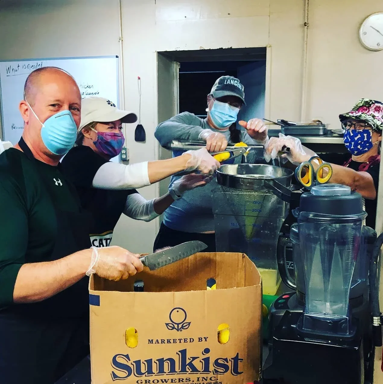 Kyle, Kolette and other volunteers making lemonade at Thelma’s Kitchen during COVID-19
